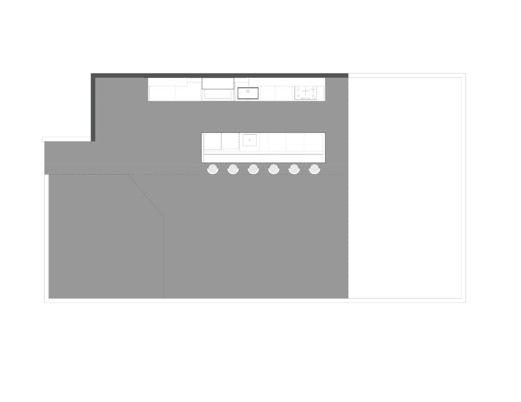 This outdoor kitchen was not only designed for cooking, but also for connecting. The central bar becomes the heart of the space: it organizes, directs, and gives character. It is the axis that structures circulation and at the same time invites sharing, conviviality, and enjoyment of the light and the surroundings.